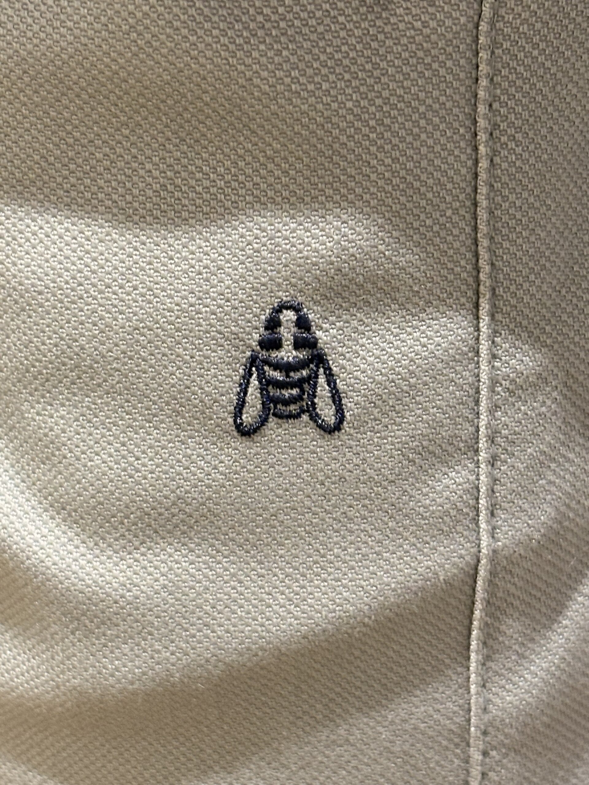 À l’arrière, on retrouve deux poches arrière passepoilées, dont une ornée d’un détail discret sur la poche droite.