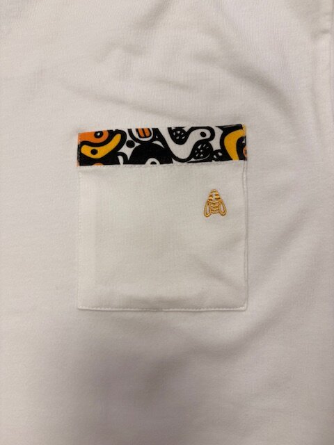 Le pochabey blanc allie simplicité et originalité grâce à sa poche poitrine à motif. Léger et confortable, il apporte une touche moderne à vos tenues du quotidien.