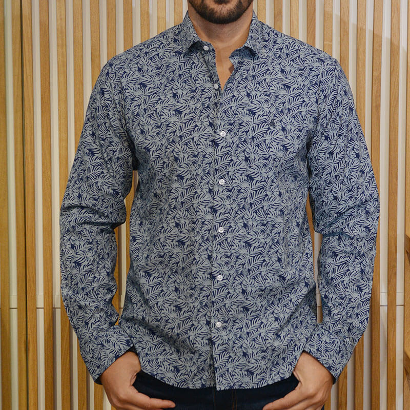 La bambou est une chemise imprimée à motif, elle s’accorde facilement de part ses couleurs bleu et gris, dans un confort optimale 100% coton.